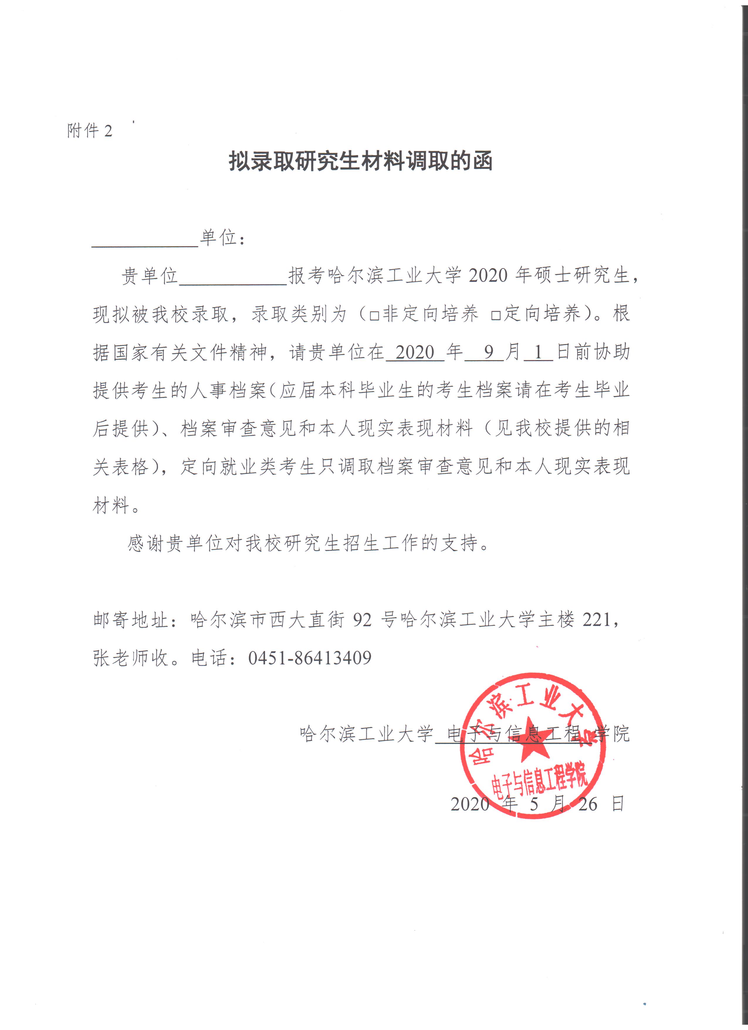 人事档案和《拟录取研究生现实表现情况表(加盖公章)》2020年9月1日前寄回。