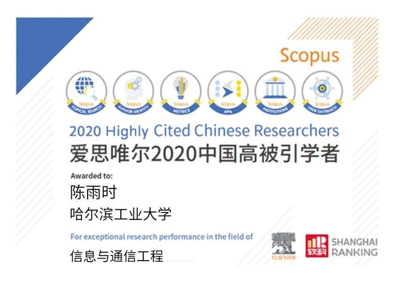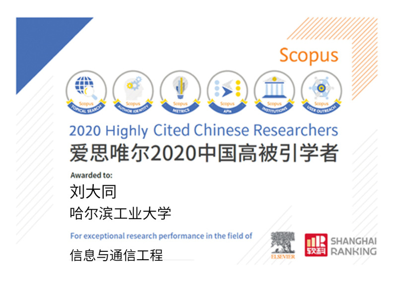 4月22日,爱思唯尔(Elsevier)正式发布了2020年中国高被引学者(Highly Cited Chinese Researchers)榜单。在信息与通信工程学科,我院刘大同教授、陈雨时副教授入选该学科中国高被引学者。该榜单是自2015年开始,爱思唯尔第七次发布“中国高被引学者”榜单,共遴选出4023名各学科最具全球影响力的中国学者。高校中,共296所大学有学者入选。其中,我校50名学者入选,高校中排名15。