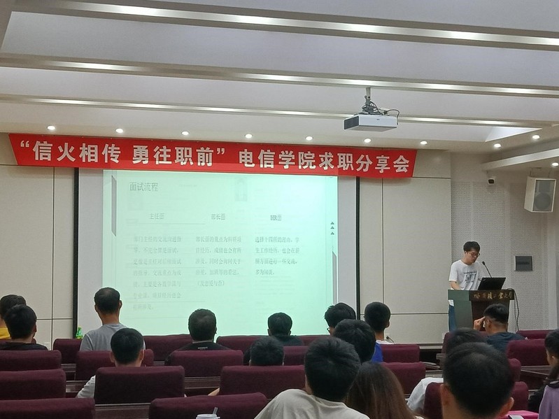 签约中电十四所的王世鹏同学分享了他在中电十四所的求职经历,包括简历制作、面试流程等。他表示中电十四所是国防电子信息领域的重要研究所,能够为科研工作者提供广阔的工作平台,鼓励有意向报名的同学好好准备,在中电十四所实现自己的人生价值。签约中国农业银行成都研发部的陈悦宁同学表示,求职时首先要考虑多方面因素,找准求职目标,并为同学介绍了几大银行的基本情况,其次介绍了求职准备事项,包括专业知识、项目经历以及面试技巧储备等,接着为同学们介绍了不同类型的岗位所需要的专业知识以及面试常见问题,推荐了一些求职时较实用的网站。签约迈瑞医疗的桑航同学首先对公司进行了详细的介绍,并分析了行业的发展情况,提到了包括多轮面试中的相关问题以及注意点,他表示,要注意在平时下功夫,多积累项目经验,丰富个人履历,求职时才能更加得心应手。