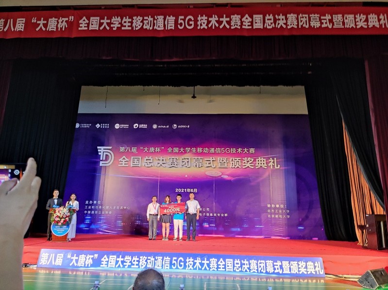 2021年6月26日至28日,第八届“大唐杯”全国大学生移动通信5G技术大赛全国总决赛在北方工业大学举办。本届比赛吸引了来自全国30个省市自治区、300余所高校的15000余名学生参与。经过校级选拔、省赛比拼,共有1400余人进入全国总决赛。我校学生获得本次大赛本科组唯一1项特等奖,并获得一等奖1项、二等奖3项、三等奖2项和优胜奖2项,此外,我校还获得优秀组织协同奖。