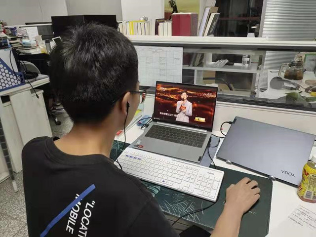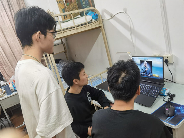 在活动中心,天游ty8线路1线路2检测中心团委学生会成员早早守候在屏幕前收看节目;在宿舍里,同学们围坐在电脑旁在线收看。节目中,坦先生一件件事迹、一张张照片,一声声话语,记录了坦先生作为一名红色战略科学家的初心与坚守,同学们在收看中爆发出阵阵掌声,表达着对坦先生深深的敬意。