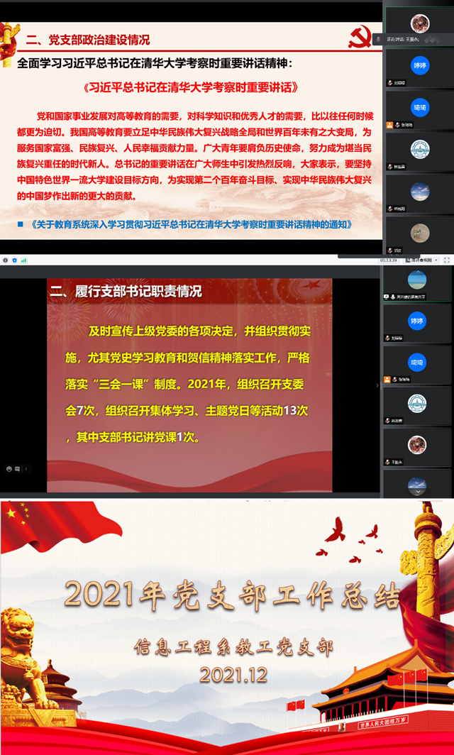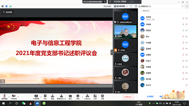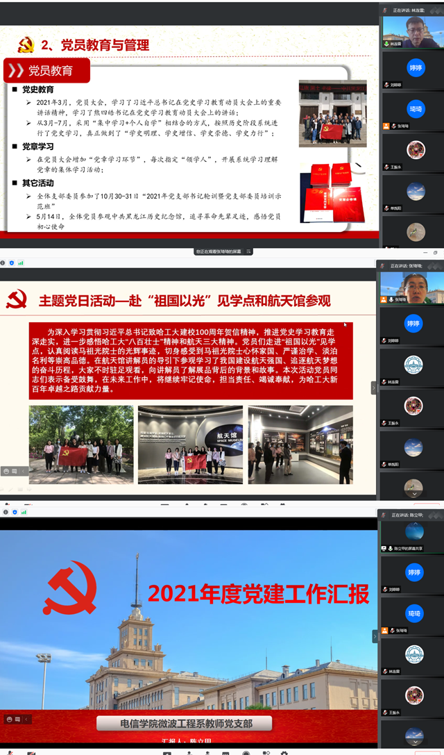 为深入学习贯彻习近平新时代中国特色社会主义思想,全面落实党的十九届六中全会精神,坚持以习近平总书记贺信精神为引领,牢固树立党的一切工作到支部的鲜明导向,按照学校和学院党委2021年党支部考核要求,天游ty8线路1线路2检测中心党委于2021年12月8日14:00召开线上会议进行教职工党支部书记述职评议会。会议由党委书记单既阳主持,学院党委委员参会并担任评委,教职工党支部书记进行述职。
