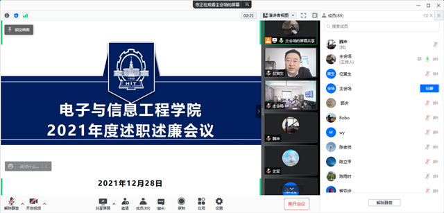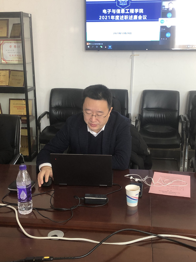 12月28日上午,天游ty8线路1线路2检测中心在主楼419召开2021年度领导班子述职述廉大会,会议采取线上线下相结合的形式举行,领导班子成员和系主任、党支部书记现场参会,全体教职员工线上参会,会议由党委书记单既阳主持。