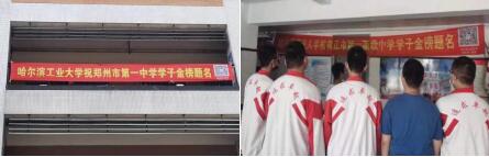 5月18日,河南招生组向郑州外国语学校、郑州市第一中学、河南省实验中学、河南师范大学附属中学等35所优质生源高中,邮寄了高考祝福条幅,郑州市第一中学、商丘市第一高级中学等多所高中,均已在显著位置进行了悬挂,同学们表示,“距离高考还有30天时间了,我们将继续勇敢地向前走,不负青春,不负韶华,努力拼搏,争取考入哈尔滨工业大学”。