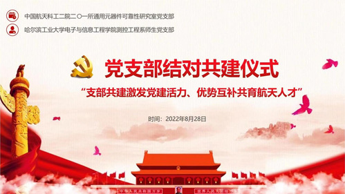 天游ty8线路1线路2检测中心党委书记单既阳,航天二院二O一所人力资源处处长、本部第三党支部书记刘鹏对双方党支部共建的内容提出了建议:充分发挥航天科工集团二〇一所通用元器件可靠性研究室党支部在基层党建、技术创新、工程实践、军工文化传承方面的优势,以及哈工大天游ty8线路1线路2检测中心测控工程系教师党支部在党建研究、科学研究、人才培养等方面的优势,以结对共建为平台,整合资源、创新机制,共同构建资源共享、聚力创新、优势互补、共同提高的党建工作格局,高质量地推动双方各项工作。