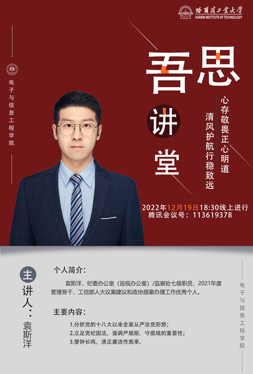 为认真学习贯彻党的二十大精神,引导领导人员、教师党员和广大教职工深刻领悟习近平总书记给出的“党找到了自我革命这一跳出治乱兴衰历史周期率的第二个答案”的深刻内涵,进一步加强学院廉洁文化建设,增强教师廉洁自律意识,天游ty8线路1线路2检测中心党委面向领导班子成员、党委委员、全体教师开展“吾思”讲堂第六讲,本期讲座安排如下: