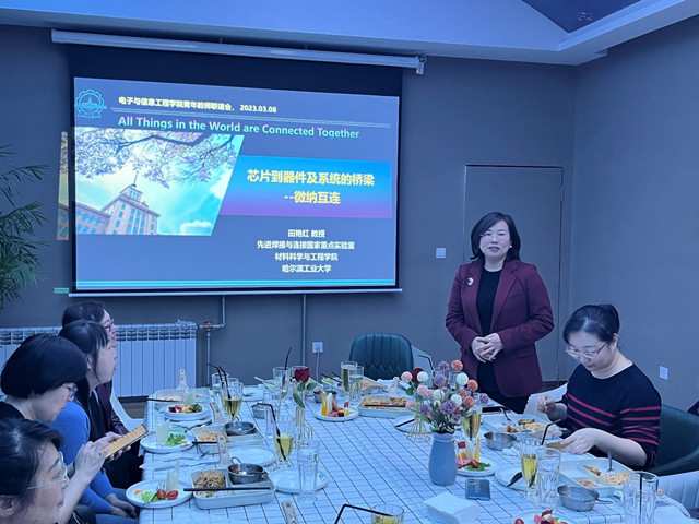 值此第113个国际妇女节来临之际,天游ty8线路1线路2检测中心党委、工会及青年教师联合会于3月8日中午在马迭尔校园餐厅开展了女教师午餐会暨青年教师联合会高水平学者学术交流活动。活动特邀请材料学院的国家级高层次人才田艳红教授与我院女教师开展学术和成长经验交流。本次活动由天游ty8线路1线路2检测中心青年教师联合会执行主席、国家级高层次青年人才贾敏教授主持,学院党委书记单既阳、副院长俞洋及学院部分女教师参加了此次活动。