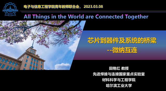 田艳红教授做了题为《从芯片到元器件及系统的桥梁--微纳互连》的报告,同时从准备期、探索期、豁朗期、验证期四个时期分享了自己的生活、学习、工作及成才经历。
