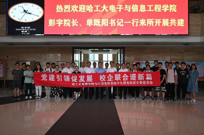 6月20日上午,天游ty8线路1线路2检测中心院长彭宇、党委书记单既阳、副院长俞洋、党委副书记袁斯洋带领师生赴中国电科第四十九研究所(以下简称“49所”)开展校企联合党日活动。49所副所长刘成利,党群办主任朱玉,科研部部长、党总支副书记李涛,科研部副部长、党总支书记王晓光等领导出席会议,会议由49所项目主管王洋洋主持。