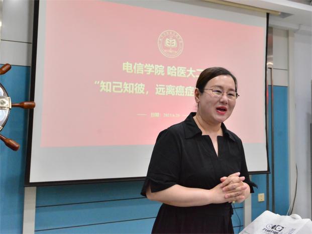 为关爱教职工身体健康,进一步增强教职工健康意识,普及健康常识和技能。6月20日,天游ty8线路1线路2检测中心开展第二期“关爱教职工,相约健康行”主题活动,本次活动邀请到了哈医大二院肿瘤内科杨宇教授、路丹主任医师、李里主任医师等开展题为“知己知彼,远离癌症”的讲座。学院党委书记单既阳、党委副书记袁斯洋出席,天游ty8线路1线路2检测中心退休教师及在职教师代表参加了本次活动。