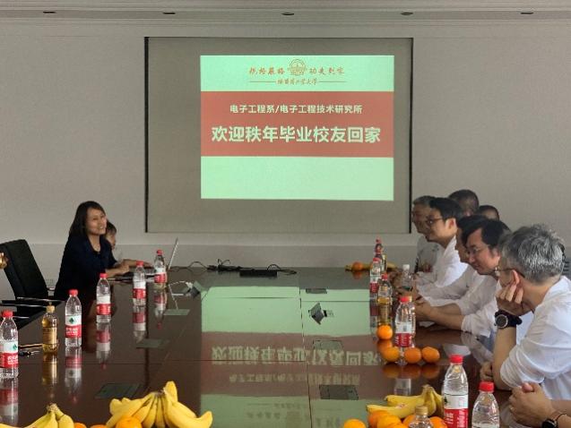当日下午,校友们再次回到熟悉的电子工程系,在新技术楼726会议室与曾经的老师、同学共同座谈,回忆大学时光。座谈会上,电子工程系主任张云老师介绍专业基本情况,老系主任宗成阁老师回顾往日时光,对校友们在各自岗位上所作出的贡献表示感谢,也希望校友们能够常回校看看,为专业的发展出谋划策。之后,校友代表表达了毕业20年来对母校校训的践行,希望能够继续为母校争光。最后,在热情的交流中,结束座谈,互赠礼物,合影留念。