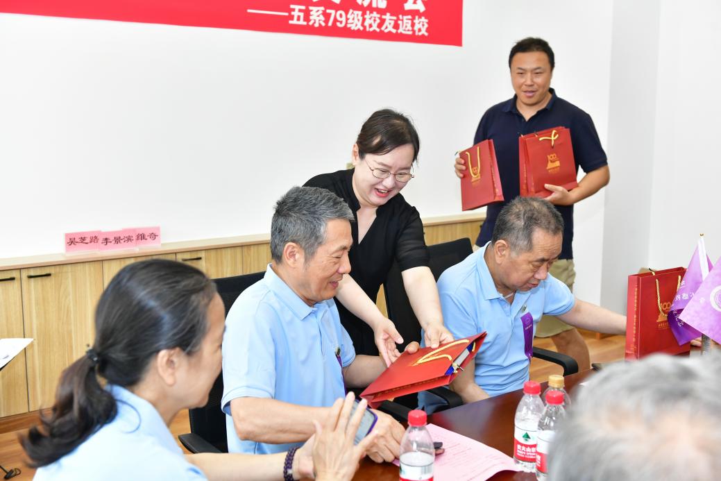 随后,学院在新技术楼726会议室举办了“五系79级校友返校纪念交流会”。会议由电子工程系主任张云主持,学院党委书记单既阳、电子工程系党支部书记张鑫、信息工程系党支部书记张腊梅等和校友们一起共话情谊。