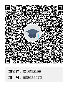 自行组队,QQ扫描二维码进入竞赛准备群,备注:学院+年级+姓名+报名星闪挑战赛