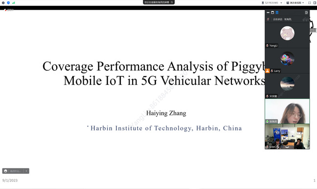 图4 张海英博士进行题为Coverage Performance Analysis of Piggyback Mobile IoT in 5G Vehicular Networks的学术报告