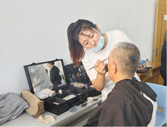 化妆师为老师化淡妆