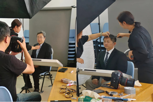 为保障高质量、高效率拍摄,学院特邀请专业团队为教职工进行化妆和造型设计,并根据各系所人数提前安排教师分时段、分批次进行拍摄。拍摄过程中,摄影师耐心细致地指导老师摆姿势、做表情,抓拍每位教师呈现出的最好状态,定格师者最美瞬间。活动全程秩序井然,拍摄氛围轻松愉悦。