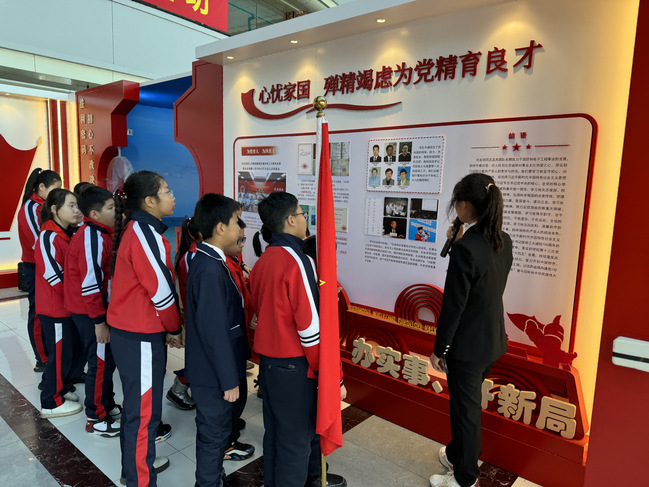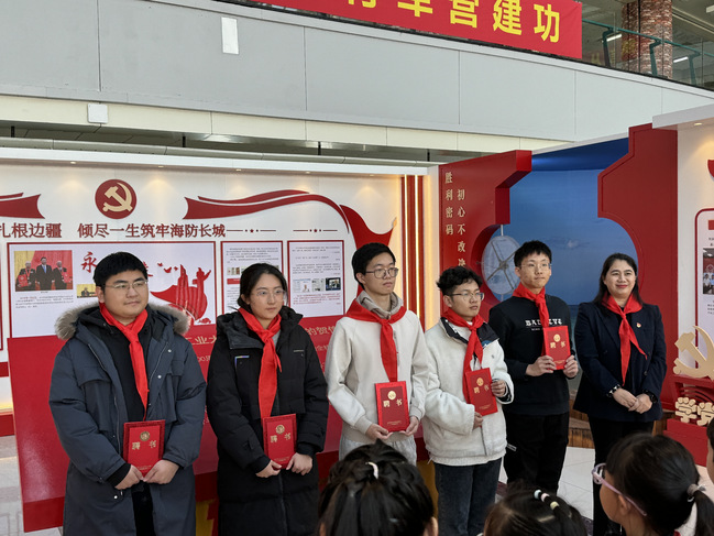 在永进志愿服务工作室党支部品牌项目“红蕴领航红领巾工作站”的基础上,复华小学与永进志愿服务工作室继续加强合作,进一步推动大中小思政一体化建设。本次复华小学共聘任5名优秀学生党员担任复华小学课外辅导员,在少先队员思政培养上贡献哈工大青年力量。之后,党员同志们在党旗前重温入党誓词,坚守初心使命。少先队员们也开展了重温入团仪式,在这个特殊的日子立志做雷锋精神的优秀传承者。最后,志愿者们也带领小朋友们参观了哈工大校园与学校暖廊,感受学校的学习氛围与人文气息。小朋友们也纷纷表示会努力学习,争取未来也在哈工大这片沃土中为祖国发展做出自己的贡献。