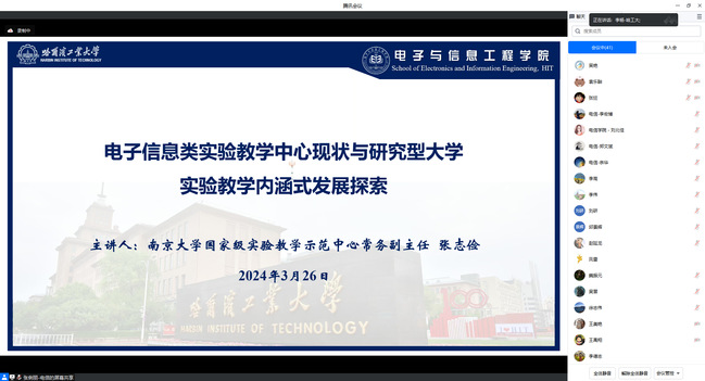 3月26日,受天游ty8线路1线路2检测中心李杨教授邀请,南京大学电子信息专业国家级实验教学示范中心常务副主任张志俭作题为“电子信息类实验教学中心现状与研究型大学实验教学内涵式发展探索”线上专题报告。报告会由李杨主持,来自天游ty8线路1线路2检测中心、数学学院、计算学部、化工学院的相关教师60余人参加了会议。