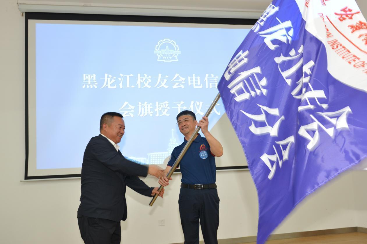 黑龙江校友会副会长刘士永致辞祝贺分会成立并为戴毓丰会长授旗。