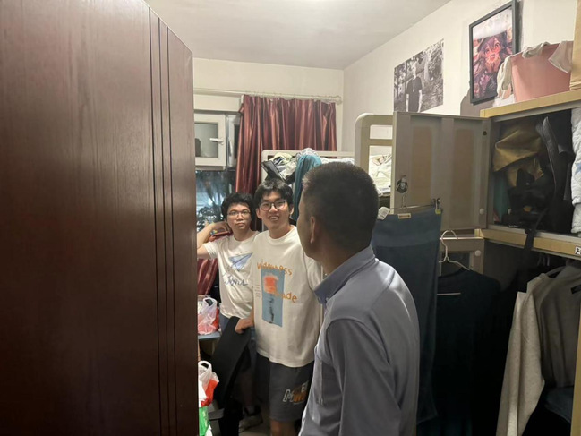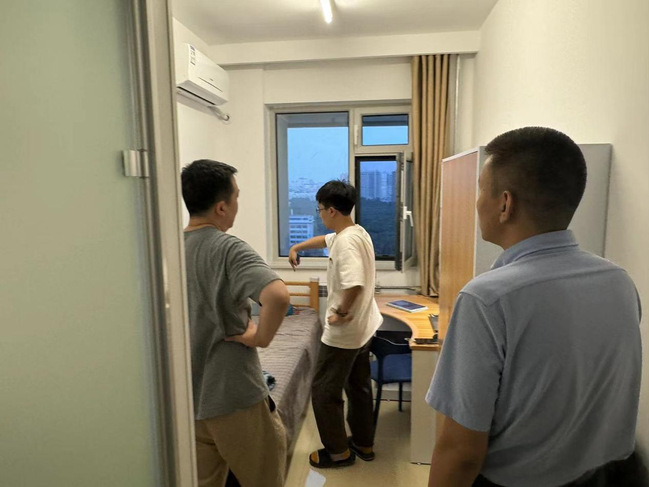 为进一步了解学院学生的学习、生活情况,掌握公寓搬迁学生的状态,7月20日、22日,天游ty8线路1线路2检测中心院长彭宇、党委书记王义、院长助理胡孟琪和辅导员金泓达、李明泉来到A01、A03、A15、A20公寓走访学生寝室,看望搬迁学生和暑期留校学生。