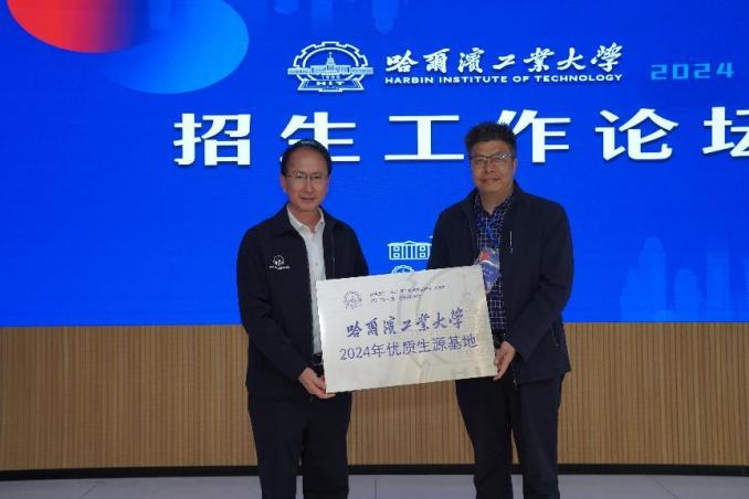 论坛期间,副校长黄玉东教授为上述重点高中授牌“2024年优质生源基地”,以此表彰各高中为哈工大输送人才方面所做出的杰出贡献。