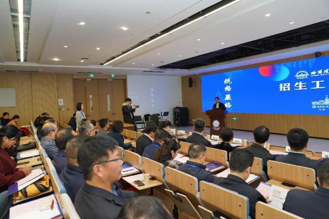 会上,河南招生组秉承一校三区招生工作协同发力的优良传统,提前筹划,邀请了郑州外国语学校、河南省实验中学、郑州一中等31所河南省重点高中校领导到场参会,并请郑州外国语学校邢中芳校长和河南省实验中学王瑞校长分别就“实施新高考综合改革的郑外探索”和“拔尖创新 双高衔接”做了大会主题报告,分享了宝贵的经验与实践成果。