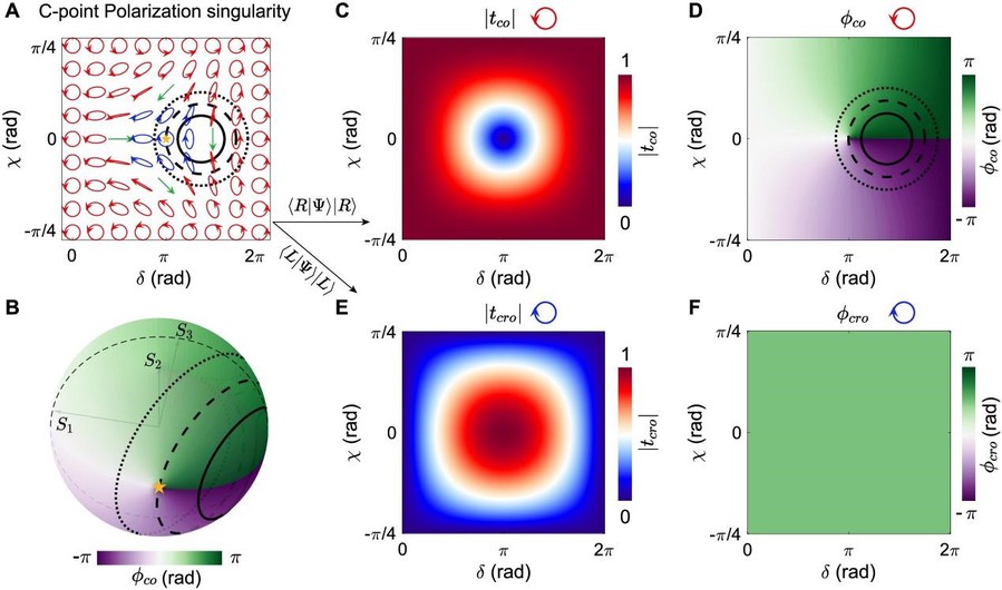 近日,我院张狂教授在超构表面的相位调控研究方面取得重要进展,突破传统几何相位仅作用于交叉极化模态的物理瓶颈,揭示了工作于圆共极化模态下的附加相位工作机理。相关研究成果以《运用庞加莱球表面的隐藏奇异点》(Exploiting hidden singularity on the surface of the Poincaré sphere)为题发表在《自然通讯》(Nature Communications)上。该项研究为圆极化电磁波在保持极化状态下的波前复用提供了新策略,在多极化卫星通信和自旋轨道相互作用等领域具有较大应用前景。