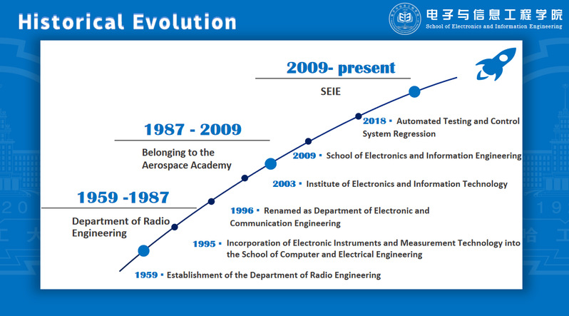 The predecessor of the school was the Department of Radio Engineering at Harbin Institute of Technology, founded in 1959. In 1996, it was renamed the Department of Electronic and Communication Engineering. In 2003, the Institute of Electronic and Information Technology was established, and in 2009, it was renamed the School of Electronics and Information Engineering. The school has a first level discipline of Information and Communication Engineering and a second level discipline of Electromagnetic and Microwave Technology. In 1981, the discipline of Information and Communication Engineering was identified as one of the first master's programs, and in 1998, it was designated as a national first level discipline doctoral program. In 2007, the second level discipline of Communication and Information Engineering was rated as a national key discipline, and the second level discipline of Signal and Information Processing was rated as a national key cultivation discipline. In 2012, the first level discipline evaluation of the Ministry of Education ranked 10th in the country, The result of the fourth round of subject evaluation by the Ministry of Education in 2016 was A -. At present, the school has six majors: Communication Engineering, Electronic Information Engineering, Information Countermeasures Technology, Remote Sensing Science and Technology, Electromagnetic Field and Wireless Technology, and Intelligent Measurement and Control Engineering. Among them, Communication Engineering and Electronic Information Engineering are key majors for national defense and key majors in Heilongjiang Province, while Information Countermeasures Technology and Remote Sensing Science and Technology are scarce majors for national defense. The school currently has 1127 undergraduate students, 331 master's students, and 237 doctoral students.